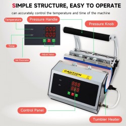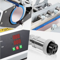 Presă termică profesională pentru sublimare, special concepută pentru imprimarea obiectelor cilindrice de 20 OZ, precum bidoane sport, termosuri din inox, căni metalice, pahare tip tumbler și multe alte produse personalizabile. Asigură o distribuție uniformă a căldurii, rezultate clare și culori intense, fiind perfectă atât pentru producători mici, cât și pentru ateliere de personalizare.